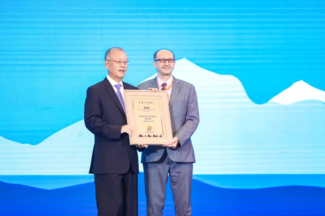年会现场,何亚非为2025“国际山地旅游日”主题活动承办地——西班牙大加纳利岛授牌。据悉,大加纳利岛是知名的旅游目的地,当地依靠海滩、舒适的气候、阳光、自然风光吸引游客,近年来,随着山地旅游的兴起,大加纳利岛也发展了丰富的山地旅游业态,延续山地旅游交流合作的国际化定位,山与海的碰撞为明年的“国际山地旅游日”带来了新的期待。