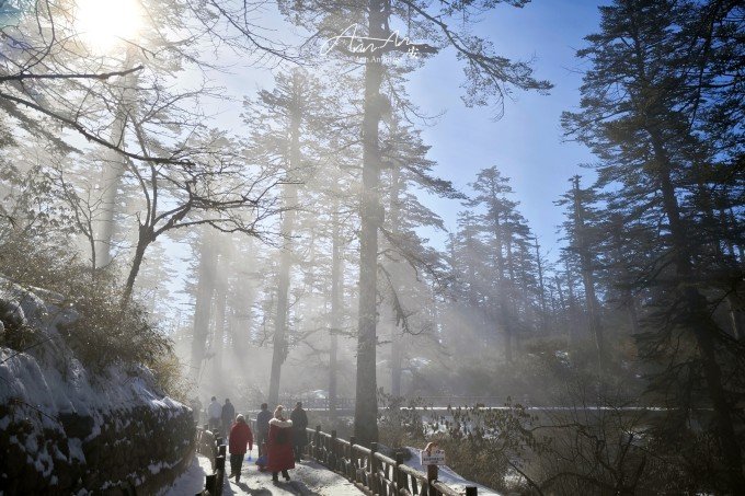 去成都和好朋友见面,我们一起去了瓦屋山。他们说瓦屋山刚刚下雪了,一定要去看看啊!对北方人来说司空见惯的雪,在成都可是件大事。朋友说,四川人的冬天有两件事比天大,一件事是下雪了,一件事是出太阳!而成都市区即使下雪,也很少有积雪,不远处的洪雅的瓦屋山带给成都人民的雪却是豪迈的大气的。仅需开车3小时,就能拍雪景大片,也让南方的孩子们置身冰天雪地中,拥有白色梦幻的童年记忆。