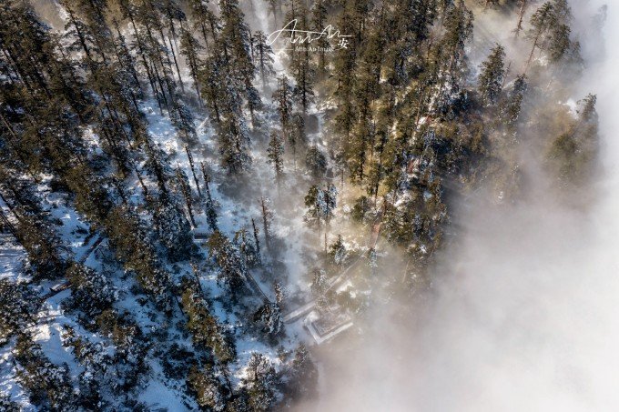 随着缆车不断升高,看大雪为山峰披上盛装,为森林挂满流苏,山中万物充满纵深的空间感,它邀请我们走向深处。山中时而大雾弥漫,变成寒山淡日的云林画境,时而风吹阳光倾洒,天地开阔。漫长的徒步,像是在和大山进行一场无声的倾诉,寂寂无言的冬心被春风吹暖,孩子们在不断融化的雪面上奔跑、堆雪人、打雪仗,清澈笑声响山谷。