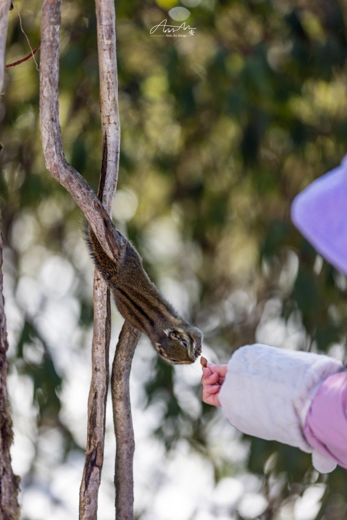 √山中会遇见小松鼠和猴子,爱吃坚果。松鼠很温顺,猴子会凶猛抢食,投喂需注意安全。