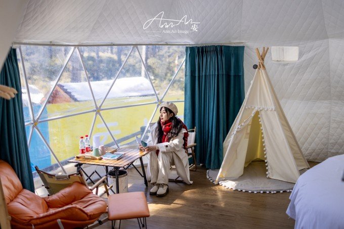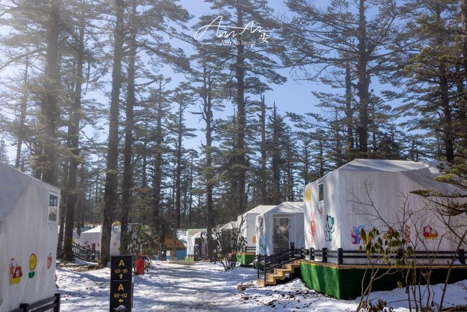 山顶也有住宿的地方,想必是拍摄星空的绝佳地点,一顶一顶的白色帐篷支起来,有机会来这里过夜。有很多玩乐的项目,雪地轮胎,滑雪场,可爱的房子拍照也非常可爱。