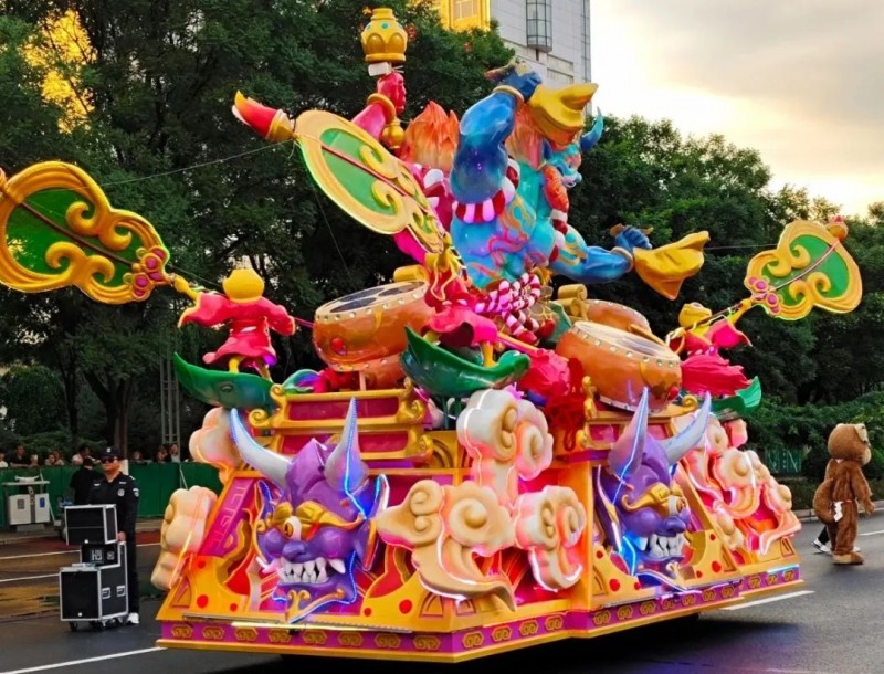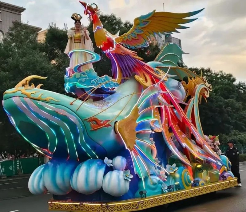 本次嘉年华的核心亮点是由北京泰名尔设计制作的五大主题花车巡游方阵。每一台花车均以中外神话传说为灵感,通过精湛的工艺和创新的设计,将古老的故事转化为流动的艺术画卷。花车从来不是简单的“造型堆砌”,其每一处细节的打磨,都藏着对文化肌理的深刻洞察。