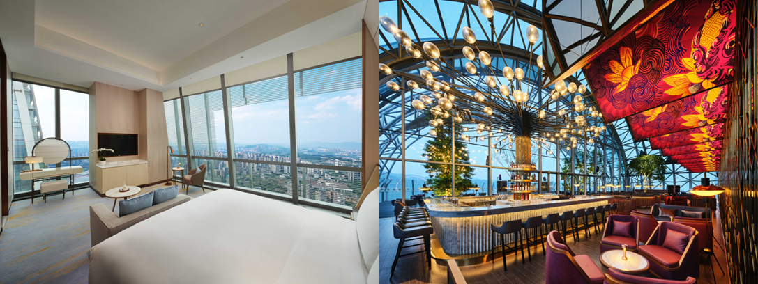 上海佘山世茂洲际酒店,地平线下88米的“建筑奇迹”,由世界知名设计师Martin Jochman团队打造,将自然岩壁与现代设计完美融合。酒店330间客房与套房各具特色,包括岩壁景观房与水下套房,带来沉浸式住宿体验。餐饮涵盖现代感十足的“源咖啡”全日餐厅、绮丽独特的彩丰楼中餐厅以及四周环绕水族馆的“渔火”特色餐厅;酒吧与大堂吧将深坑景观与自然美景相映成趣,让宾客在自然奇境中享受别具一格的入住体验。