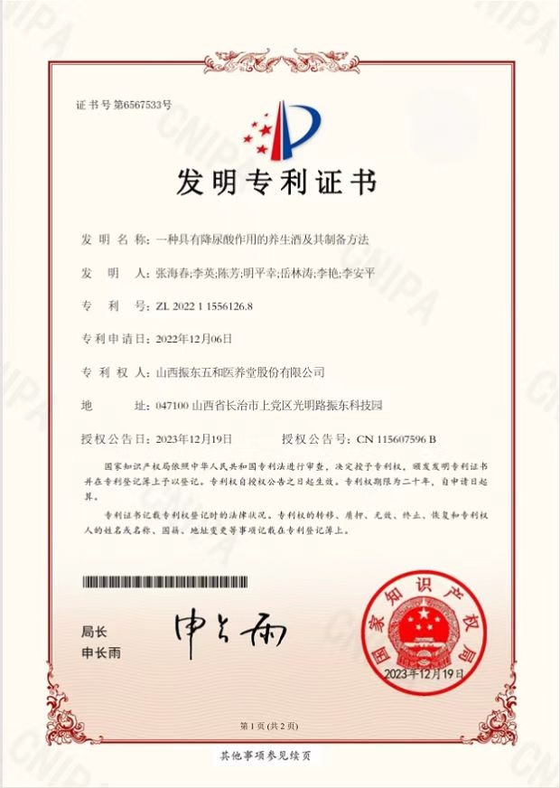在这一背景下,振东集团通过深入研究药食同源领域,成功研发出振东五和养生酒。这款养生酒不仅获批了国家“降尿酸”专利,还在降血糖、降血脂方面展现出显著效果。其核心优势在于安全性高、适用性广,且严格遵循中医辨证与协同增效原则,通过药材配伍实现双向调节,增效减毒。同时,将养生融入三餐,通过食物性味归经温和调理体质,契合中医“未病先防”的理念,为患者提供了一种全新的健康管理方案。