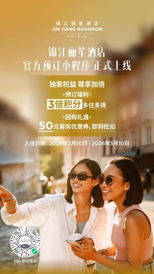 (中国上海,2026年3月10日)锦江丽笙酒店官方预订小程序今日正式上线,为锦江荟会员打造更便捷的预订入口与更丰富的会员权益体验。即日起,微信搜索“锦江丽笙酒店官方预订”即可进入小程序预订住宿,并畅享3倍积分及多样化积分兑换体验,让每一次出发都更加从容高效。