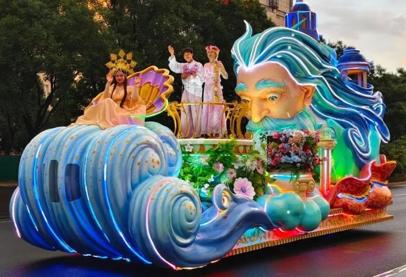 本次嘉年华的核心亮点是由北京泰名尔设计制作的五大主题花车巡游方阵。每一台花车均以中外神话传说为灵感,通过精湛的工艺和创新的设计,将古老的故事转化为流动的艺术画卷。花车从来不是简单的“造型堆砌”,其每一处细节的打磨,都藏着对文化肌理的深刻洞察。
