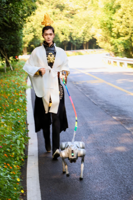 不同于传统马拉松的严肃氛围,本次赛事创新性融入多元趣味元素,让竞技与欢乐完美融合。多为角色扮演达人分别化身神仙、《一人之下》动漫角色,身着精致服饰与跑者并肩奔跑,时而互动合影,成为赛道上的“移动风景线”;特别策划的“杨戬”牵着“二郎神”机器狗领跑环节,更是引发全场欢呼,机器狗灵活的步伐与“杨戬”的国风造型相得益彰,不少跑者特意放慢速度拍照记录这一创意瞬间。