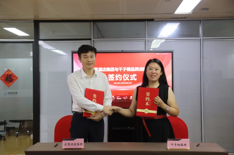 9月12日,宏昆酒店集团与千子桐品牌正式签署合作协议,双方将围绕酒店品牌联合发展、资源协同等领域展开深度合作。宏昆酒店集团首席发展官兼产品官牛书腾、千子桐品牌负责人刘海云分别代表双方签署协议。