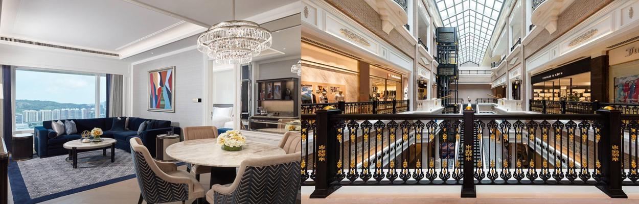 洲际度假村联盟澳门伦敦人酒店以英伦风情为基底,融合澳门多元文化,凭借沉浸式场景与精细化服务,成为跨境旅游标志性旅居选择。酒店为全套房式设计,近600间套房结合现代风格与经典英式设计,尽显高雅奢华。餐饮亮点包括米其林名厨Gordon Ramsay主理的英式酒吧及扒房,呈献招牌惠灵顿牛排等美食。酒店设施齐全,包括礼宾服务、商务及休闲空间;购物中心与威尼斯人、巴黎人等相连,打造集奢华、美食与购物于一体的标志性城市地标。