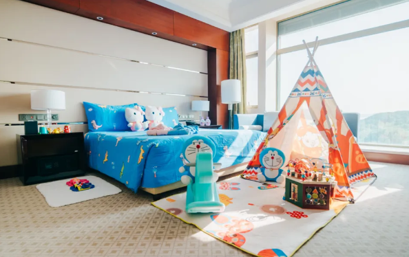 值得一提的是,酒店的“一站式度假”体验直击游客痛点。其推出的家庭套房3天2晚度假套餐,堪称亲子出行福音—— 商务套房可连续入住2晚或拆分两间1晚,每间每晚含3份金咖啡厅自助早餐,首晚赠送VIP水果与迷你吧软饮畅饮,更有免费加床、亲子主题布置等贴心服务。